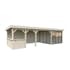 Taktäckning, golv och träbalksgrund ingår inte men kan köpas som tillval.