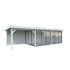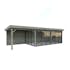 Tillverkad av nordisk gran med 120x120 mm starka limträstolpar och 19 mm takbrädor. Låsbara skjutdörrarna i 4 mm härdat glas och aluminium. 28 mm väggstockar.