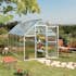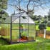 Canopia by Palram Mythos växthus är ett elegant designat växthus. Det hjälper dig att hålla jämna temperaturer och sprida solljuset för känsliga växter. Det har praktiskt taget okrossbara polykarbonatpaneler med dubbla väggar och en kraftig grön pulverlackerad, rostbeständig aluminiumram. Mythos har en låsbar gångjärnsdörr med magnetlås, takventil, rännor och en bas av galvaniserat stål för bättre stabilitet. Mythos växthus är elegant och praktiskt, perfekt utformat för att skydda dina växter från väder och vind så att du kan börja odla tidigare och fortsätta odla senare.