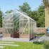 Venus-serien finns i olika storlekar från 5 m² till 7,5 m². Beroende på storlek levereras växthuset med ett eller två ventilationsfönster i taket, vilket ger dig möjlighet till god ventilation i växthuset. Venus har en lättglidande skjutdörr, vilket säkerställer otroligt enkel åtkomst till växthuset. Glaset kan levereras som antingen 3 mm delat växthusglas eller 4 mm polykarbonat.