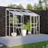 Under den varma perioden är det nödvändigt att hålla temperaturen i växthuset nere. Ida 3,3 kvm väggväxthus har 1 ventilationsfönster som standard i taket liksom en takränna på framsidan.