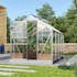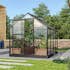 Venus växthus 5 kvm i anodiserad aluminium kan väljas i aluminiumfärgad eller grön stomme och glas eller polykarbonat. Det har en skjutdörr upphängd på hjul för lätt öppning och stängning. Dörren kan placeras med öppning åt höger eller vänster och spärras i mellanläge för ventilation.