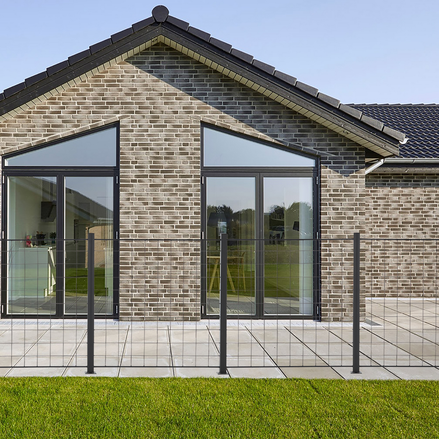 Elegant och modern svart spaljé. Stängsel av rionät är perfekt som villastängsel, eller till att göra några mysiga hörn med rosor eller klätterväxter som växer upp längs stängslet.