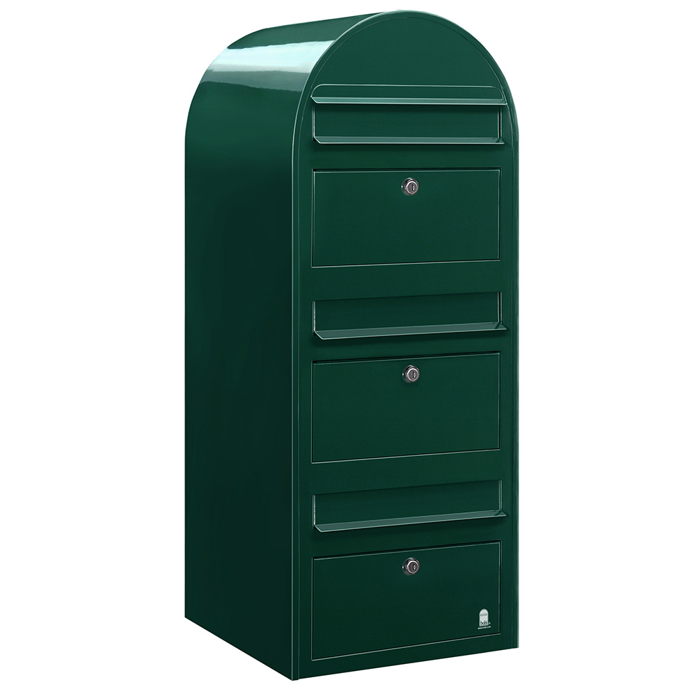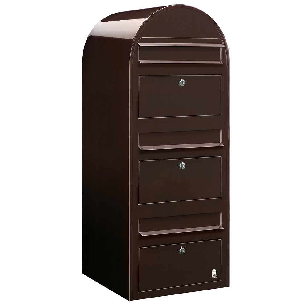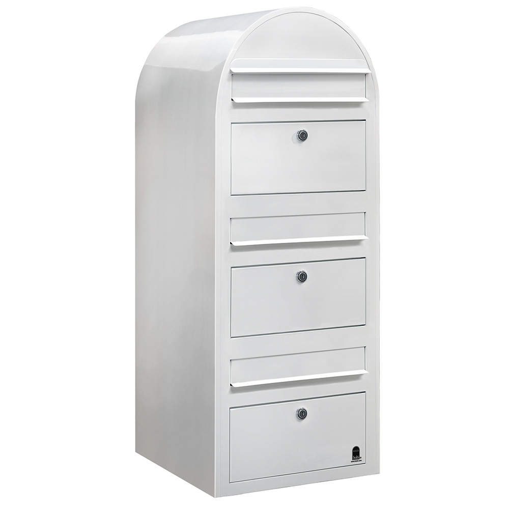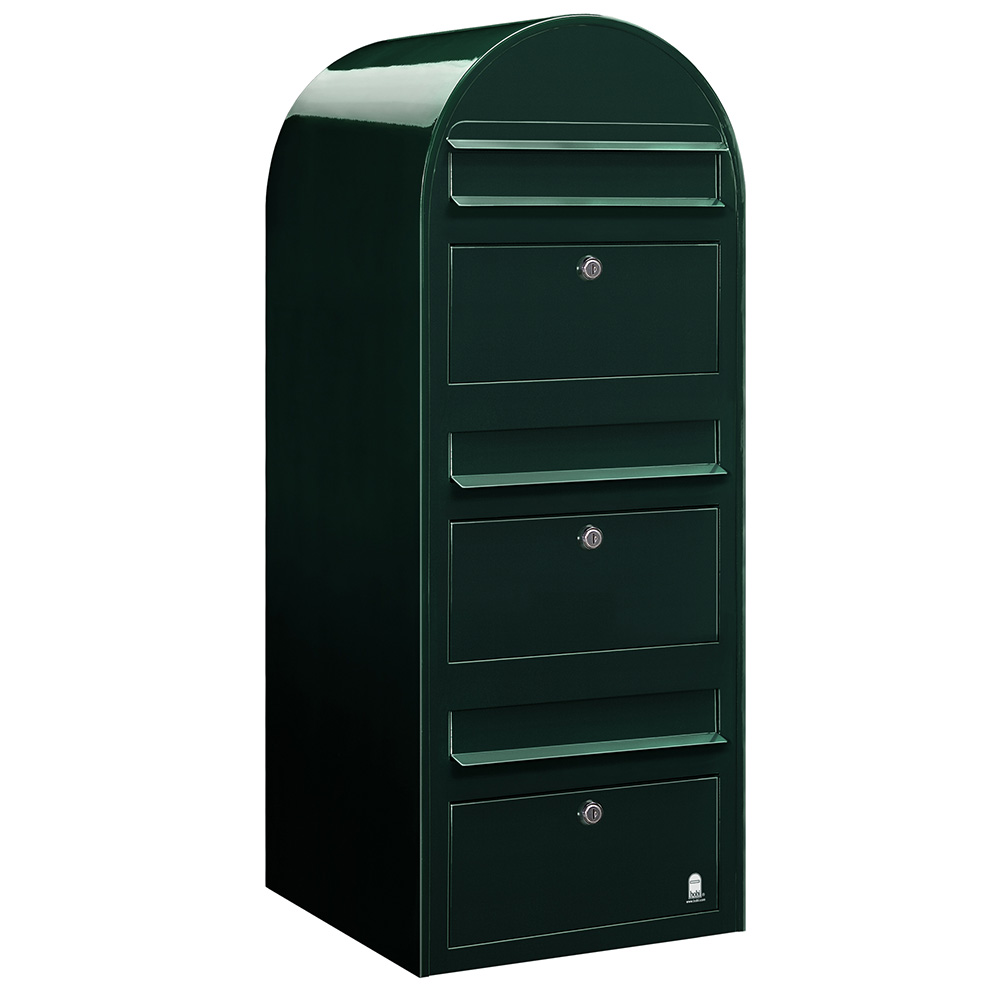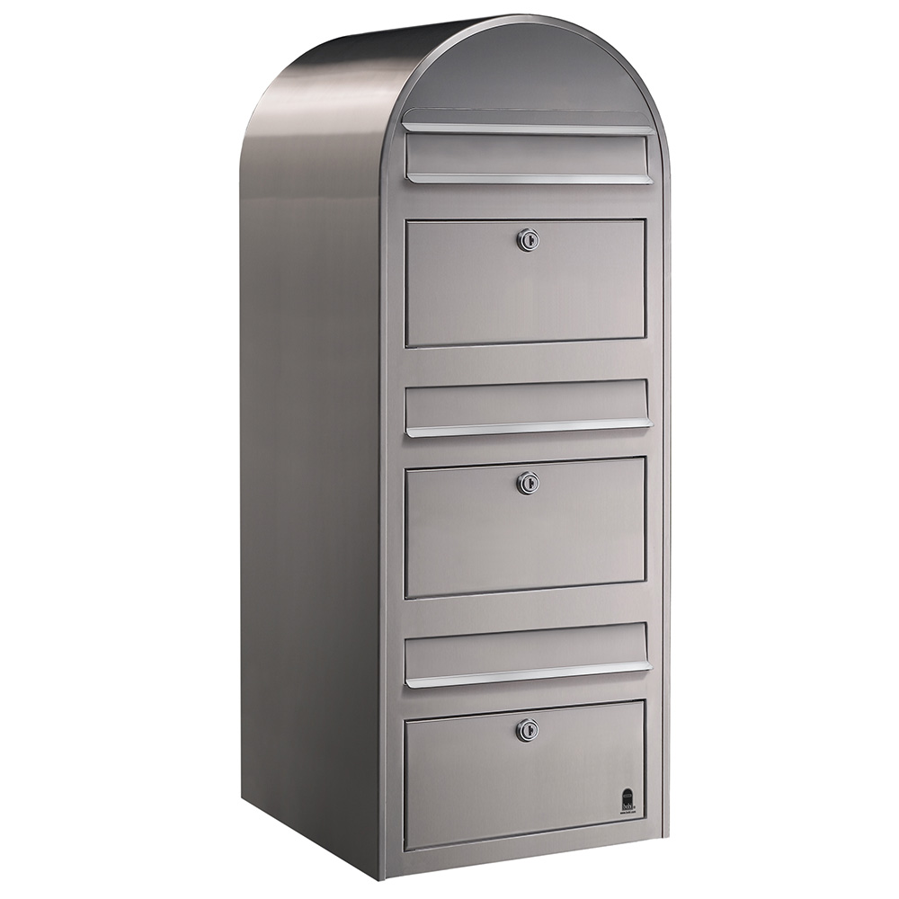 Denna brevlåda från Bobi är försedd med tre postfack på 35 cm djup. Passar utmärkt till flerfamiljshus eller som ett snyggare alternativ i en lägenhetsbyggnad.