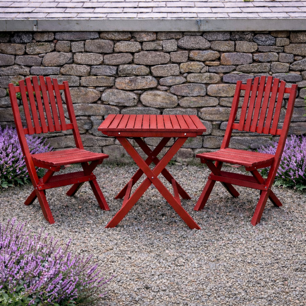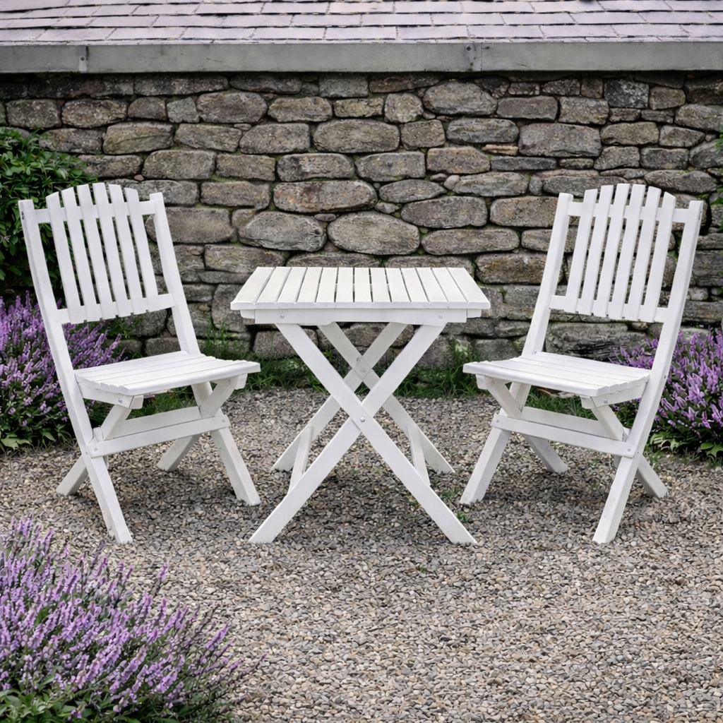 Eden Woods Skäret är en modern tolkning av den klassiska svenska trädgårdsmöbeln — ett set som fungerar lika bra som en lätt och smidig cafégrupp som en komplett matgrupp för mindre uteplatser.