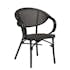 Stilfull stapelbar caféstol i brun aluminium och sits och rygg i flätad textilen.