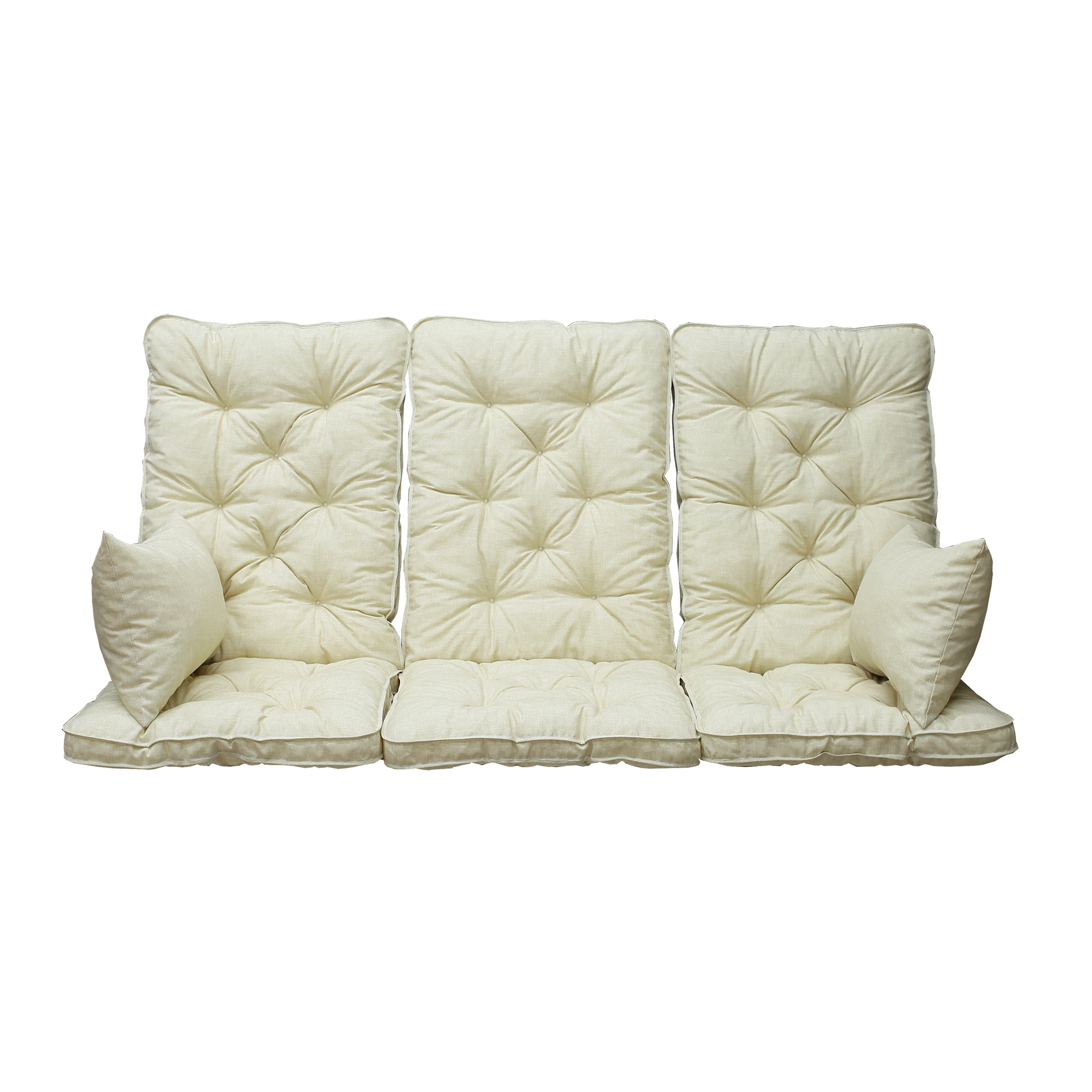 Bekväma kuddar med hög rygg och sidokuddar för trädgårdsgungor.