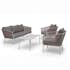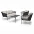 En nätt, modern och sofistikerad soffgrupp för den lilla uteplatsen. Tillverkad i aluminiumstomme med flätade rep. Dynor med tyg i olefin.