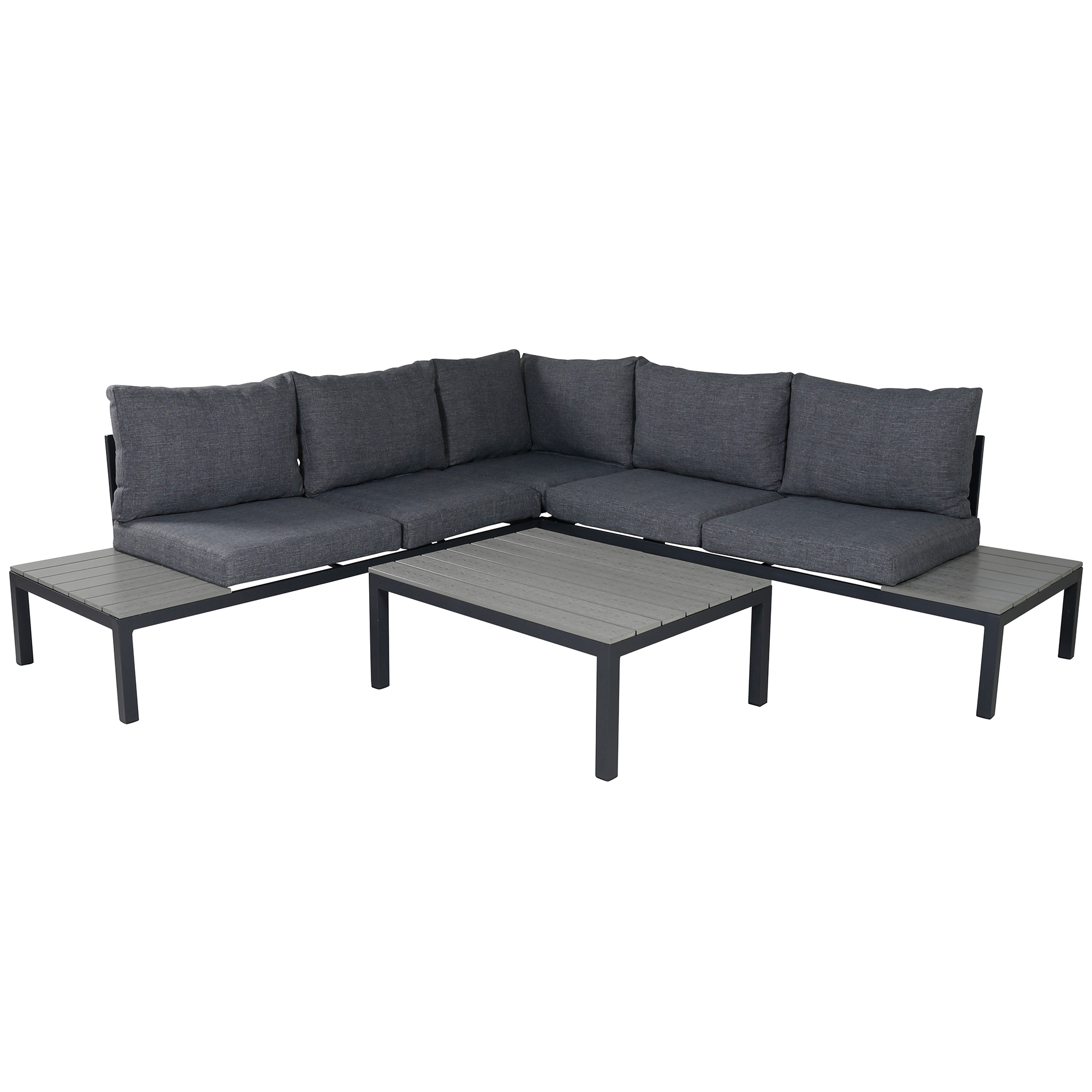 Soffgrupp Otoe från Venture Home. Skön och snygg grupp i aluminium med tillhörande bord och en toppskiva i polywood. Ingen montering krävs. Gruppen rymmer totalt 5 personer. Slitstarka dynor medföljer.