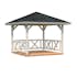 Paviljong tillverkad av nordisk gran med 120x120 mm starka limträstolpar och räcke. 5 års garanti.