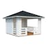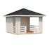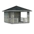 Paviljong av 28 mm knuttimmer med delvis täckta väggar Tillverkad av kraftiga djupimpregnerade grundbalkar som ger huset stabilitet och en lång livslängd. 5 års garanti.