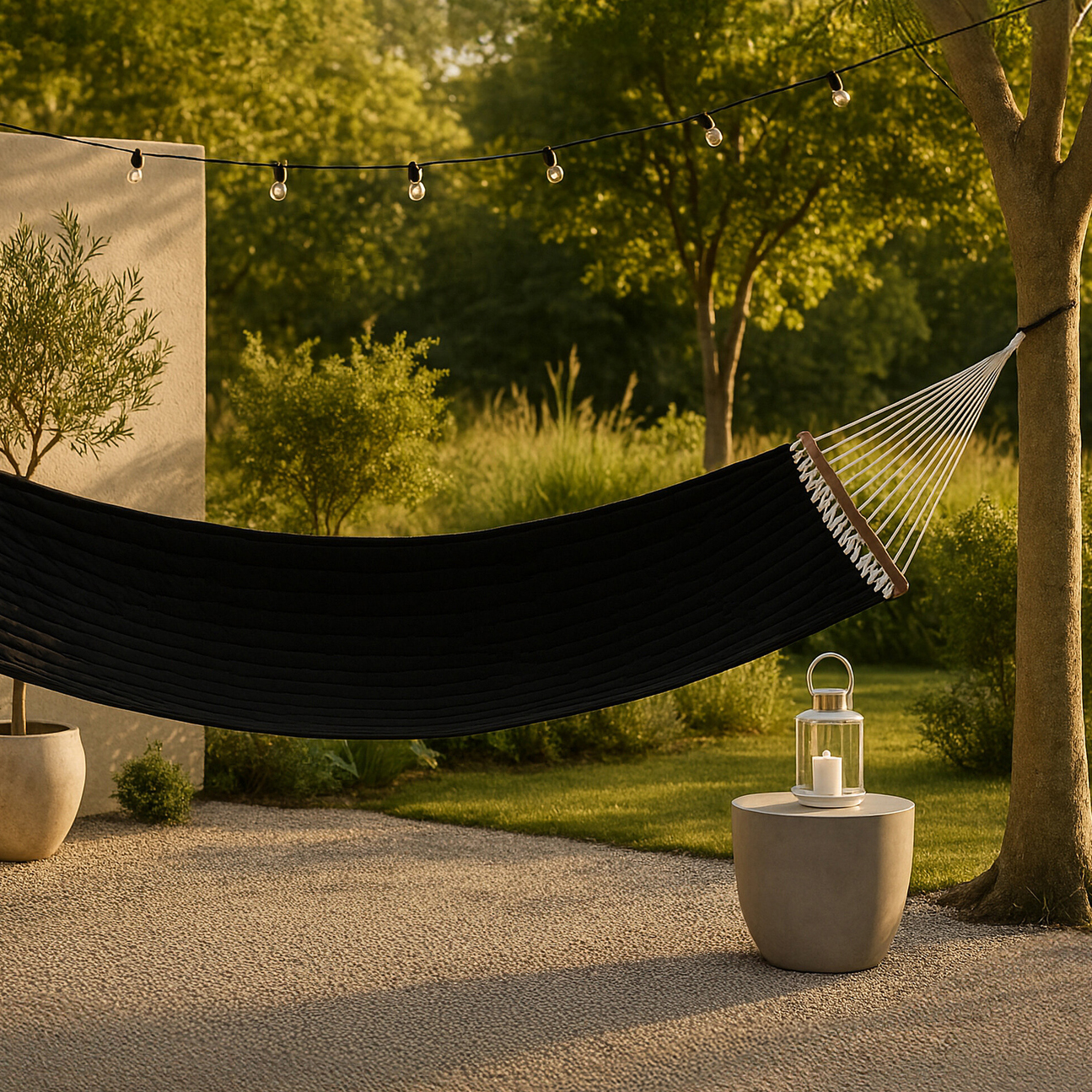 Dubbel-hängmattan från serien Marbella erbjuder er en charmig avkopplingsplats på en bekväm matta av polyester, dekorativ träram av akacia och läckra rep som möjliggör flexibel upphängning. Ramen bidrar till stabilitet och ökad komfort. Fäst den på altanen eller mellan favoritträden i trädgården och njut tillsammans av soliga dagar i sommar.