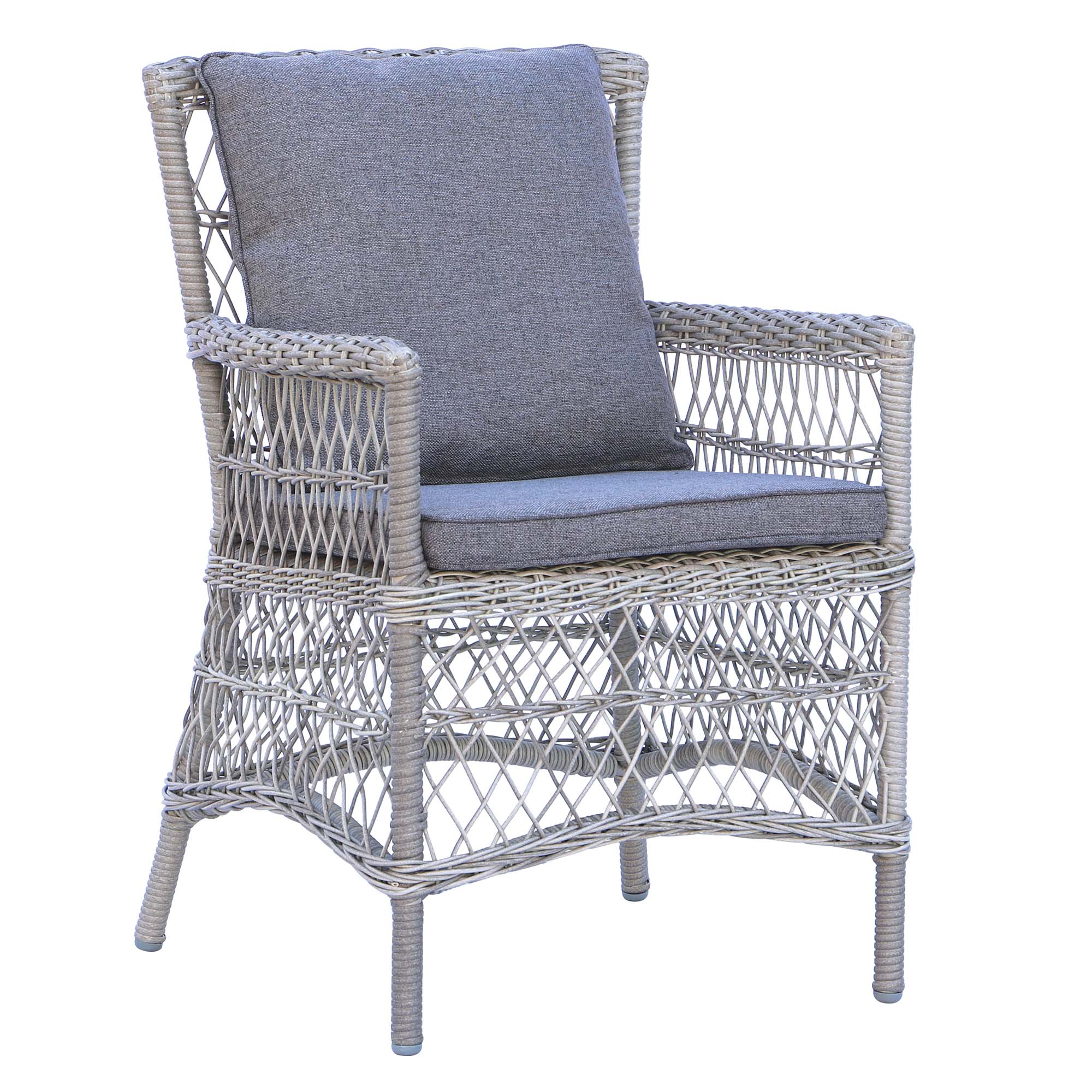 En bekväm sommarstol med aluminiumram och en lätt och vacker luftig design. Denna rottingstol i naturlig färg blir alltid en prydnad för varje terrass och trädgård.