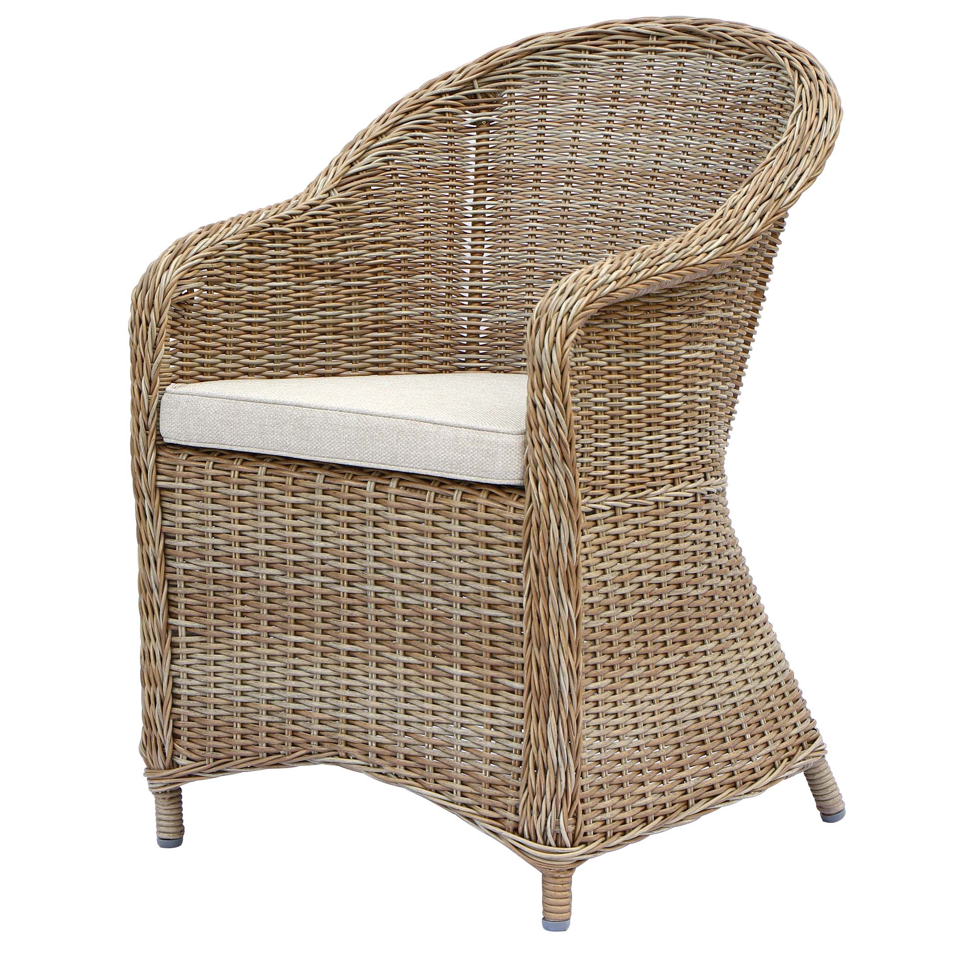 En klassisk sommarstol med aluminiumram och en bekväm, rundad design. Den här naturfärgade rottingstolen är alltid ett "måste" på varje terrass och i varje trädgård.