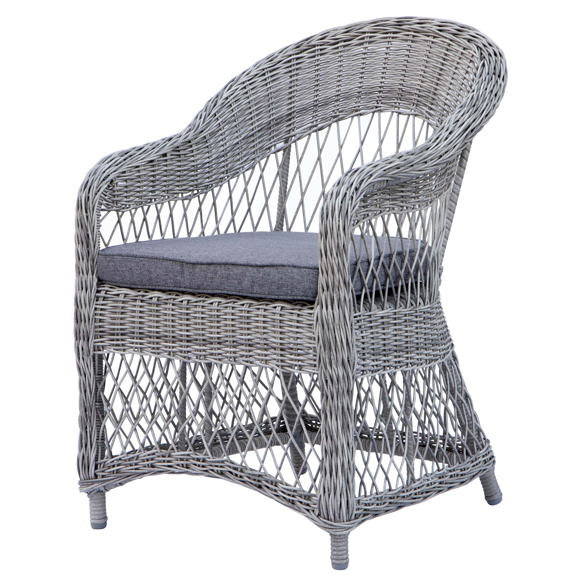 En bekväm sommarstol med aluminiumram och en lätt och vacker luftig design. Denna rottingstol i grå färg kommer alltid att vara en prydnad för varje terrass och trädgård.