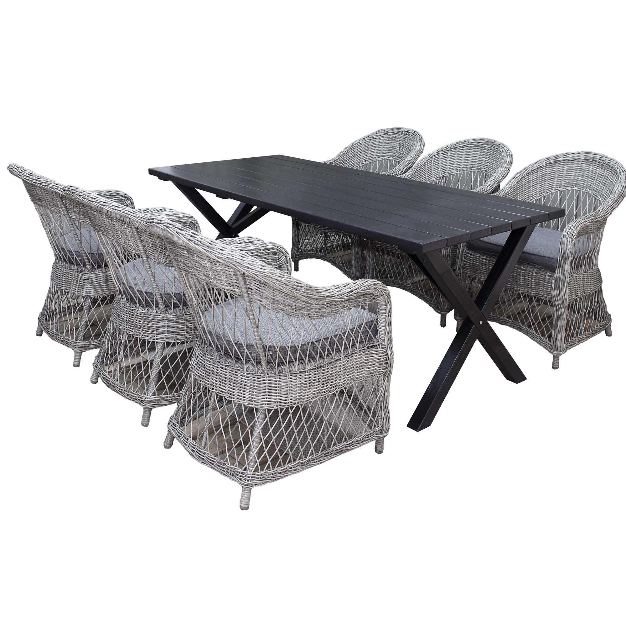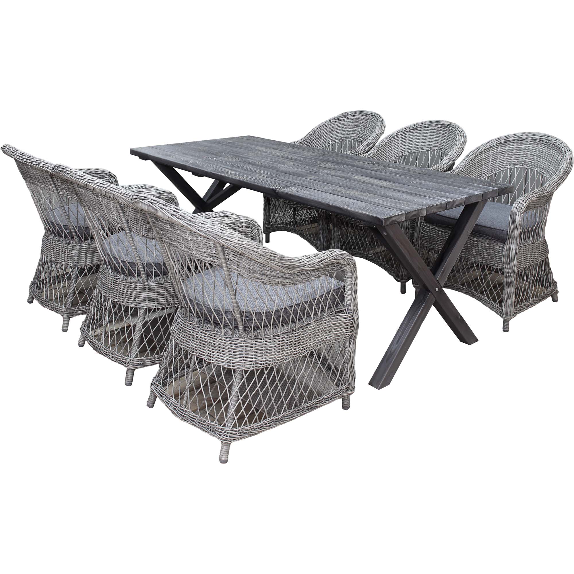 Matgrupp Utomhus Baltic Garden190 cm bord & 6 Merida grå stolar
