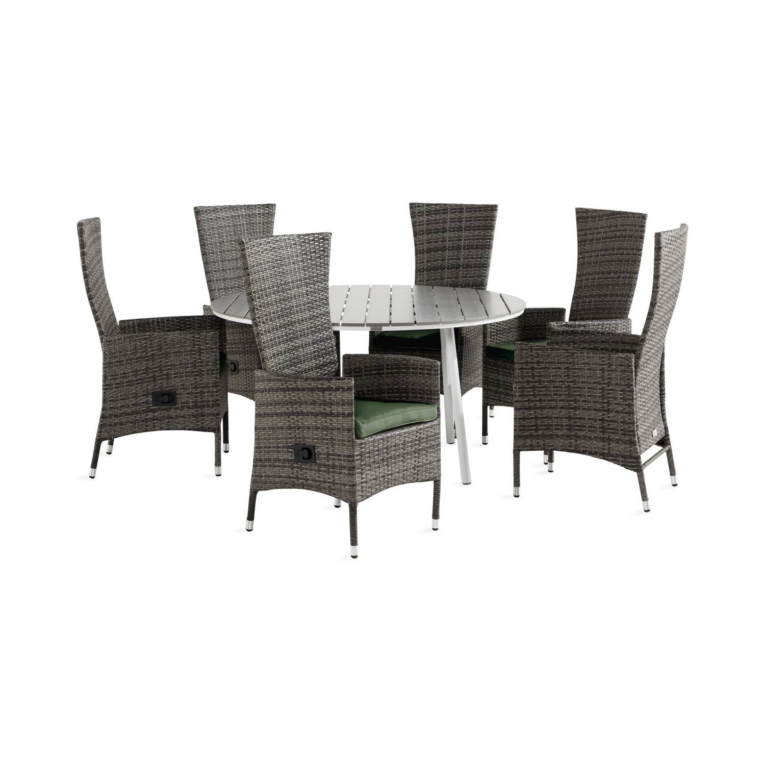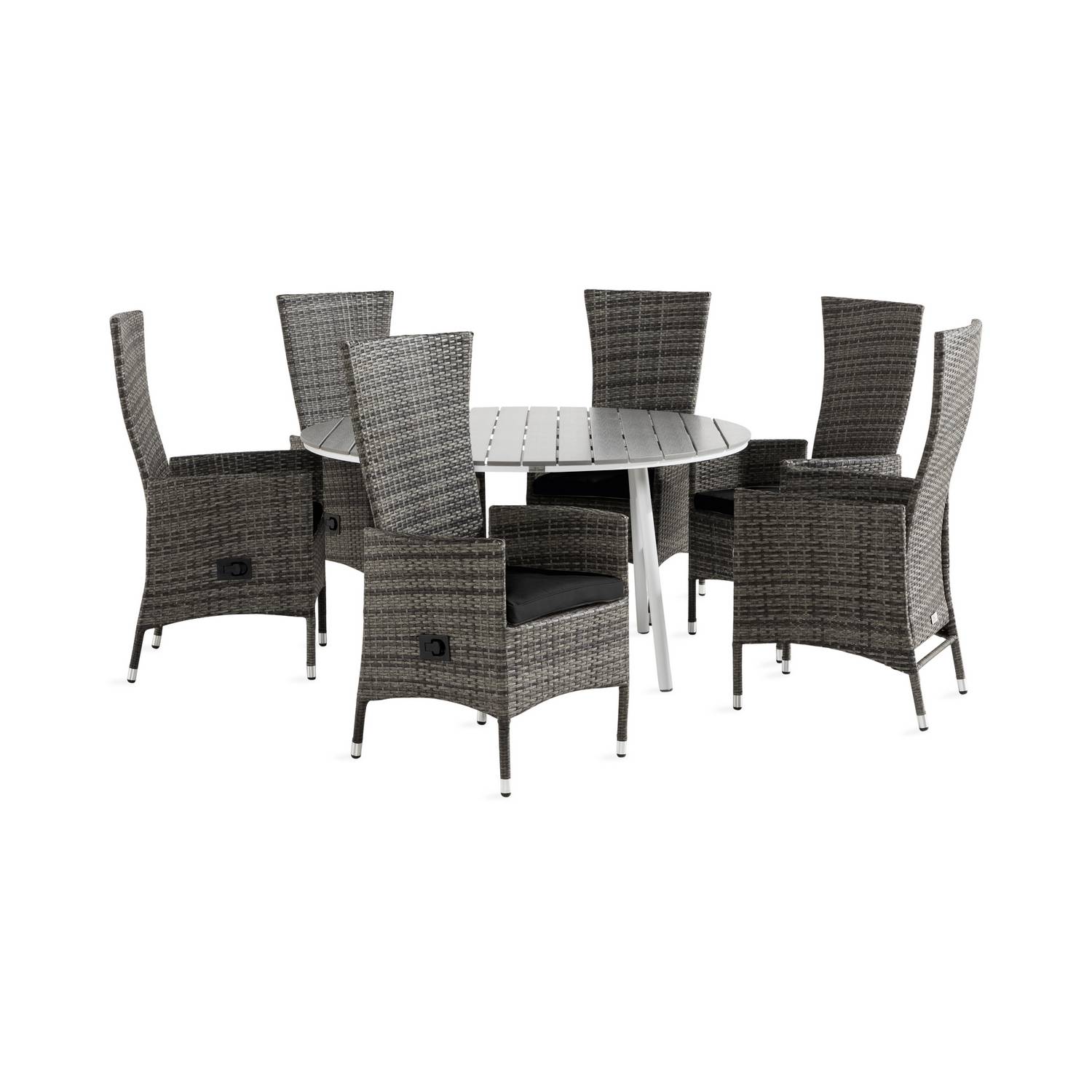 Matgrupp Comfort GardenTunis Matgrupp Utomhus 140 Rund med 6 Jenny Fåtölj Ställbar m Dyna