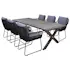 Modernt kombinerad utegrupp med rektangulärt bord i massivt trä på 220 cm med kryssben och 6 bekväma Levanto-stolar. Gott om plats för 6 personer.