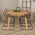 Matgrupp Julle från Venture Home. Matbord med en bordsskiva i akacia. Matchas med 6 stycken Minos matstolar med stolsben i stål och sits i rep.