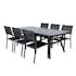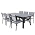 Matgrupp Vyn med ett matbord i svart aluminium och grått glas. Matchas tillsammans med 6 st Curz matstolar med en ram i svart aluminium. Bord och stol kräver enklare montering.