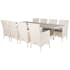 Matgrupp Venture HomeLova 160/240 med 8 Milwa StolarGrå Bord med Vita Ben, Vit Stol med Grå Dyna
