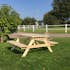 Ett behändigt parkset för 8 personer med bänk och bord i ett, strategiskt placerat på din favoritplats, fulländar den enklaste picknicken. De uppfällbara bänksitsarna erbjuder alltid torra och fräscha sittytor. Tillverkat i 27 mm svenskt FSC-furu. Levereras omonterad.