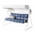 Vit pulvermålad stålrörsstomme förbehandlad med Bonderite®. Förzinkat metallnät i rygg- och sittdelen. Textilen är en blandning av bomull och polyester, taket av PVC-plast.