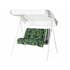 Vit pulvermålad stålrörsstomme förbehandlad med Bonderite®. Förzinkat metallnät i rygg- och sittdelen. Textilen är en blandning av bomull och polyester, taket av PVC-plast.