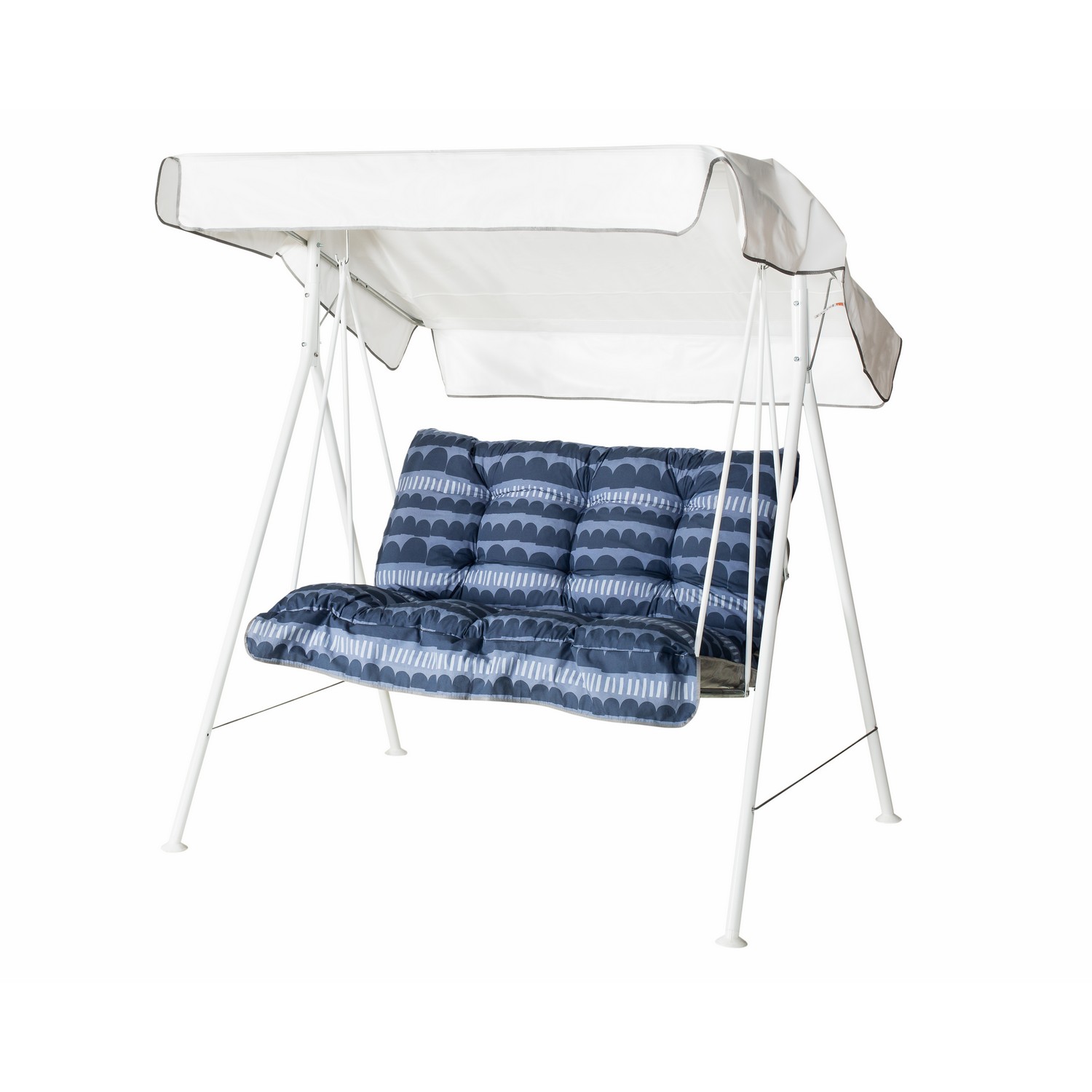 | Material | Pulvermålad stålrörsstomme, förzinkat metallgaller, textilen en blandning av bomull/ polyester, taket pvc- plast., Stål |