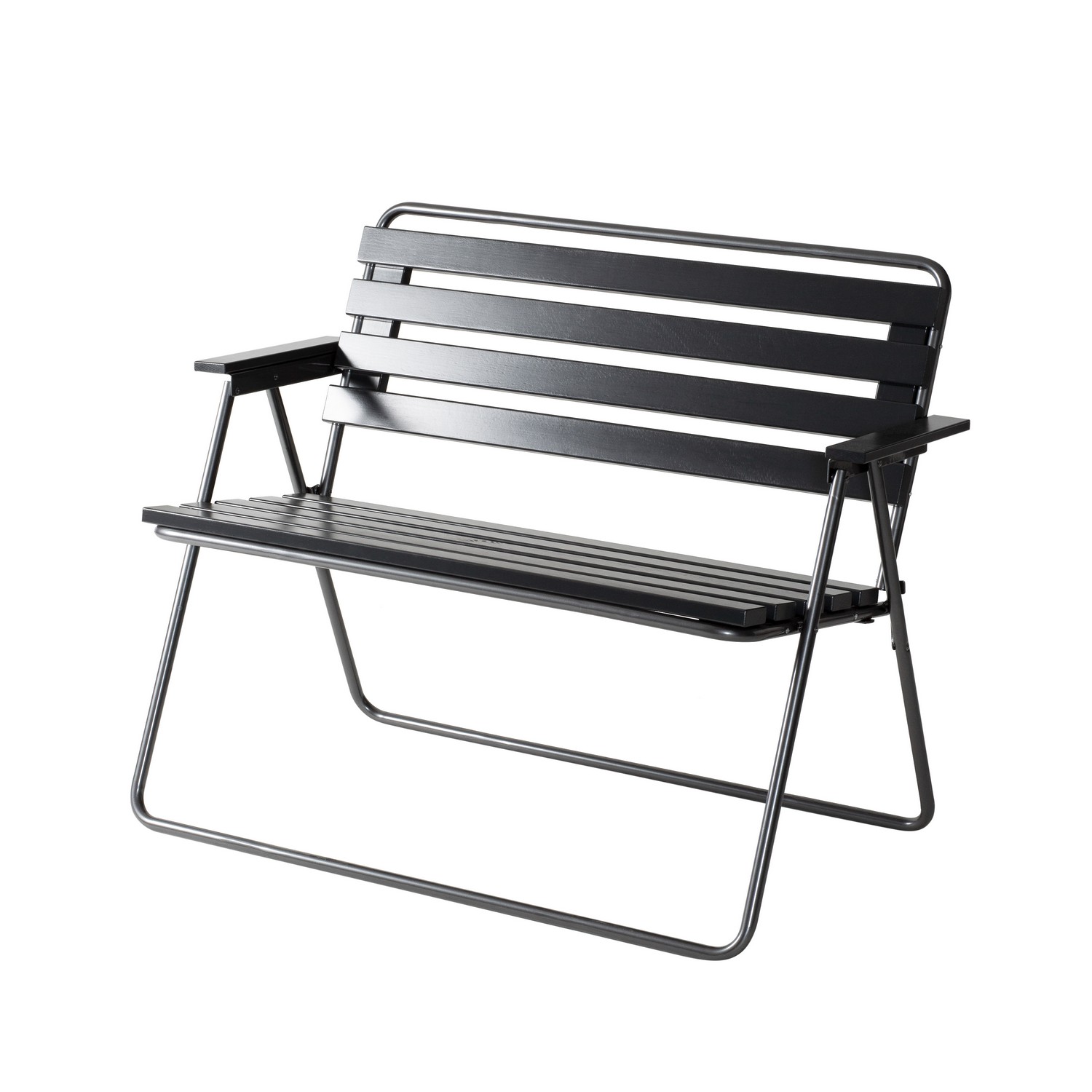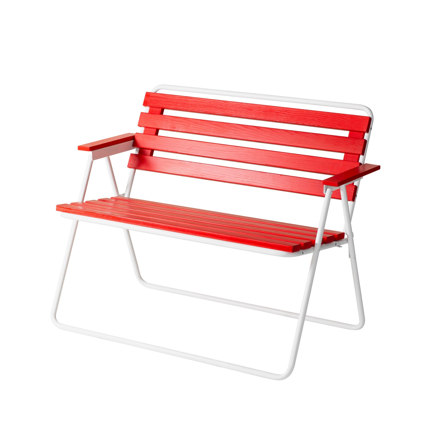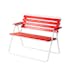 Bänk Retro 322 från Varax med plats för 2 personer. Pulvermålad stålrörsstomme och sits av furu. Ihopvikbar.