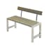 Bänk från PLUS med ryggstöd. Har en ram av stål och plankor av furu/gran. Plankor: 42x116 mm.