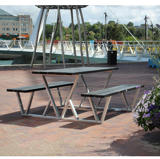 Wix är ett stabilt och modernt bänkbord från Eden Wood. Här kan 8 personer bekvämt ta en lunch eller en fika.