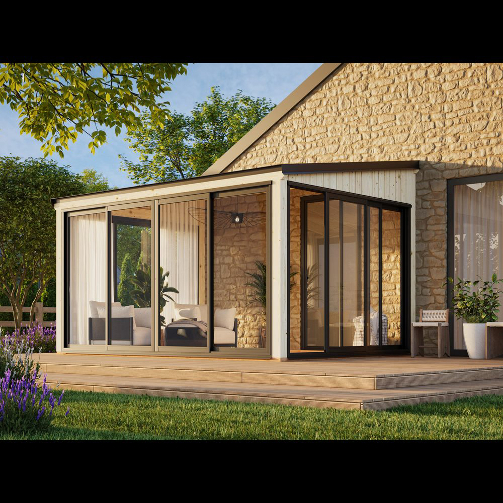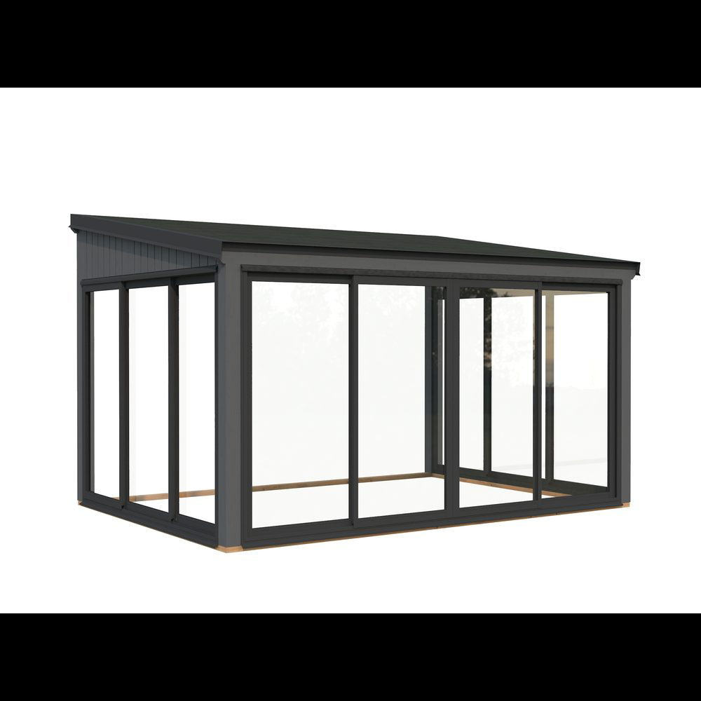 Lumi 11,6 m² Slide Plus är ett modernt, mångsidigt uterum tillverkat av högkvalitativ nordisk gran och stöds av robusta laminerade stolpar (120x120 mm) för långvarig hållbarhet. Dess rena, platta tak och minimalistiska design gör det till ett elegant tillskott i moderna trädgårdar, på terrasser eller vid poolen.Paviljongen har aluminiumskjutdörrar med 24 mm härdat dubbelglas, vilket ger både säkerhet och god ljudisolering. Dörrarna är låsbara för extra trygghet.