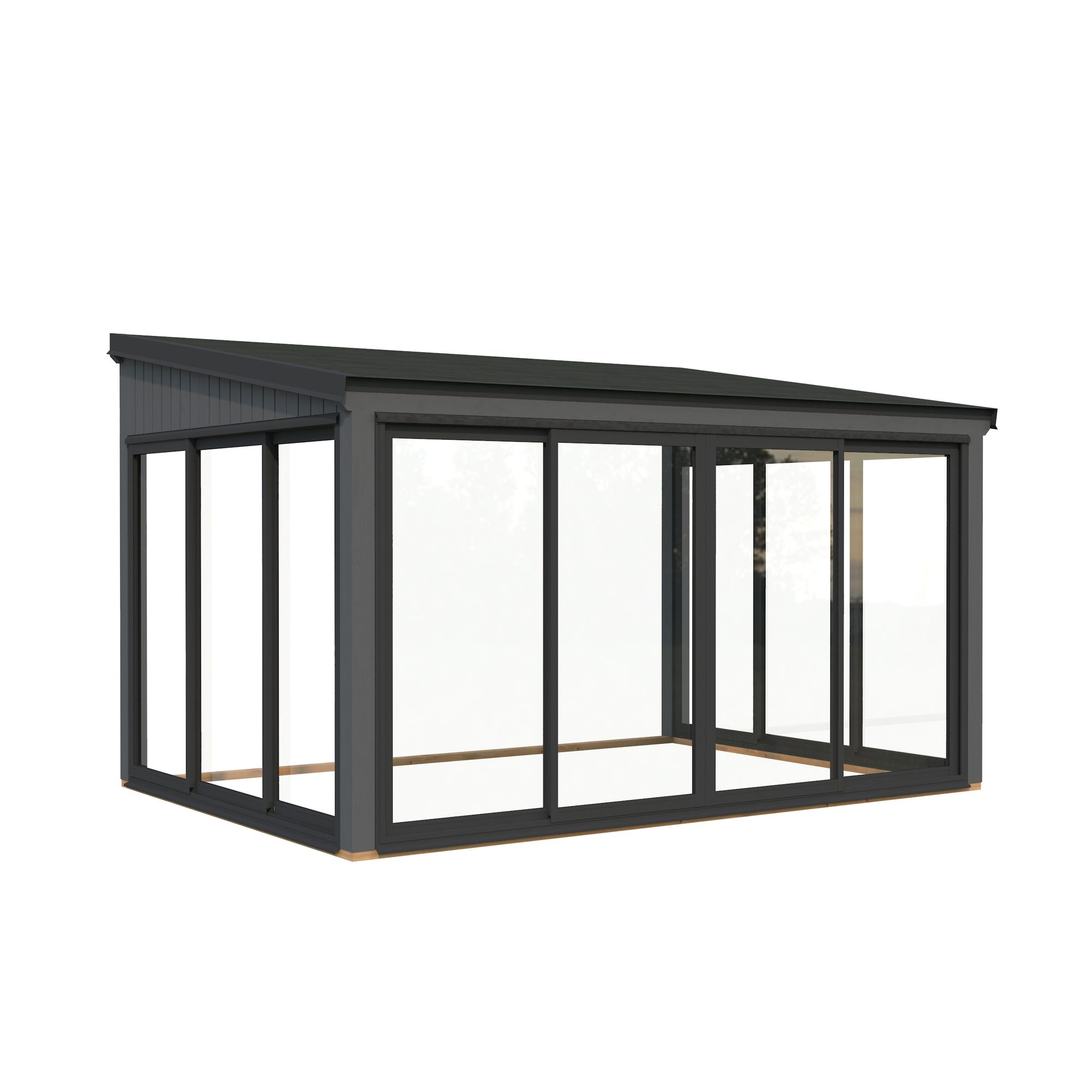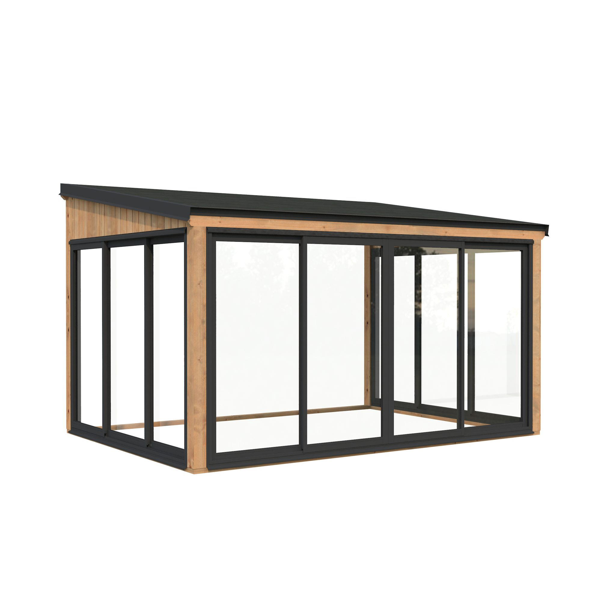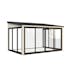 Lumi 11,6 m² Slide är ett modernt, mångsidigt uterum tillverkat av högkvalitativ nordisk gran och stöds av robusta laminerade stolpar (120x120 mm) för långvarig hållbarhet. Dess rena, platta tak och minimalistiska design gör det till ett stilfullt tillskott i moderna trädgårdar, på terrassen eller vid poolen.Paviljongen har aluminiumskjutdörrar med 4 mm härdat glas, vilket kombinerar säkerhet med elegans. Dörrarna är låsbara för extra trygghet.