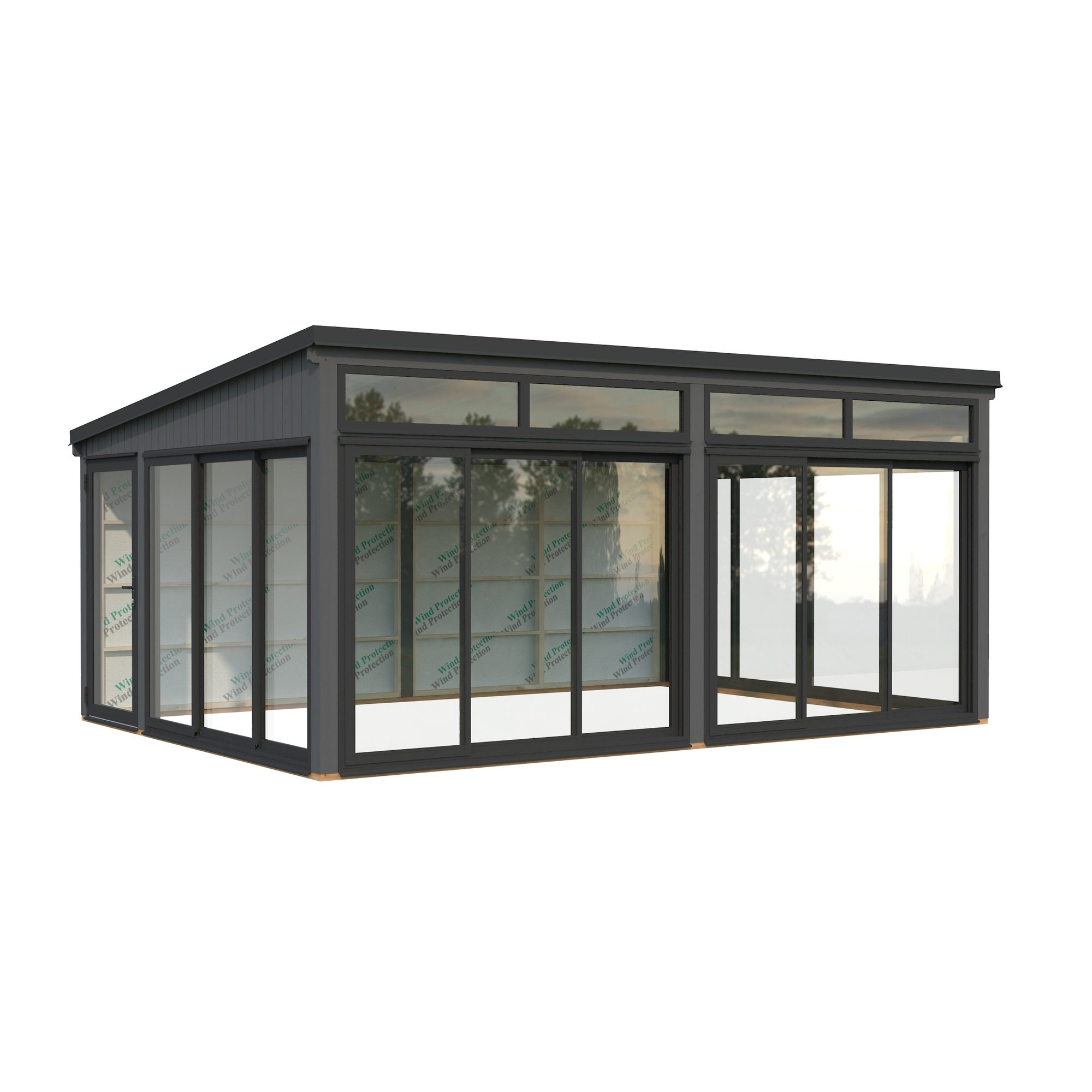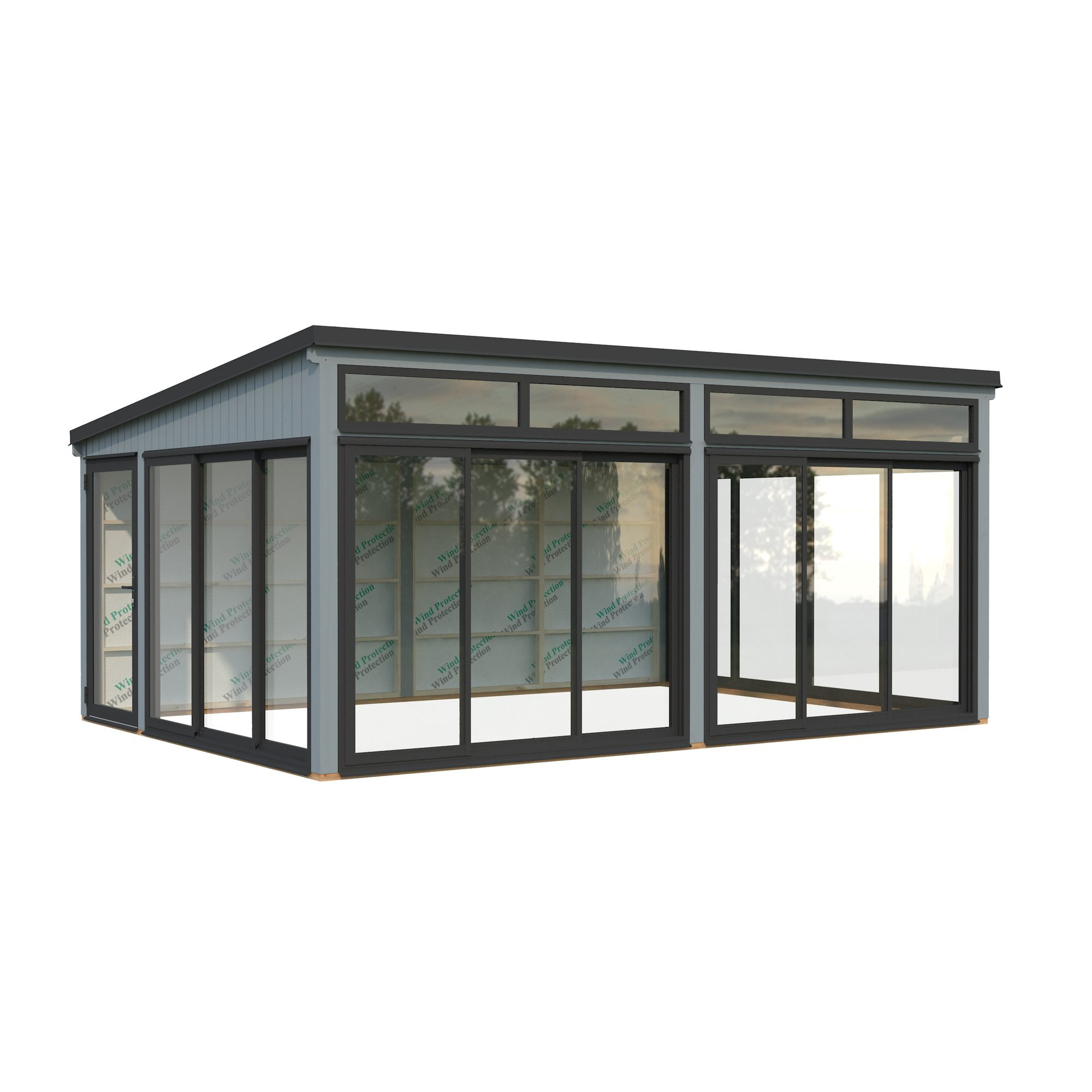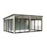 Elegant fristående uterum i nordisk stil med trästomme och aluminiumskjutdörrar. Saga 23,3 m² Slide är ett modernt, mångsidigt uterum byggt av högkvalitativ nordisk gran, med laminerade stolpar (120x120 mm) som ger långvarig stabilitet. Den rena, platta takdesignen och minimalistiska stilen gör det till ett elegant tillskott för moderna trädgårdar, terrasser eller poolområden.Paviljongen har aluminiumskjutdörrar och en enkel aluminiumramad dörr, båda med 4 mm härdat glas, vilket ger säkerhet och stil. Skjutdörrarna är låsbara.