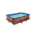 Pool 220 x 150 x 65 cm är en rektangulär pool med ram och trä-look. Denna kompakta pool innehåller en filterpump och sticker verkligen ut med sitt coola trämönster.
