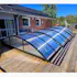 Skenorna i detta pooltak för 4x8 m pool är hela 10,5 m långa. Detta gör att du kan skjuta hela pooltaket utanför poolen. Vi tycker att detta är en självklarhet, men de flesta pooltak som säljs i Sverige för 8x4 m pool har bara skenor som är ca 8,5 m långa. För att kunna skjuta bort hela taket måste du isåfall köpa till dyra tilläggsskenor, alternativt acceptera att en viss del av poolen alltid är täckt av tak. Något som man som konsument lätt förbiser och upptäcker först efter köp.