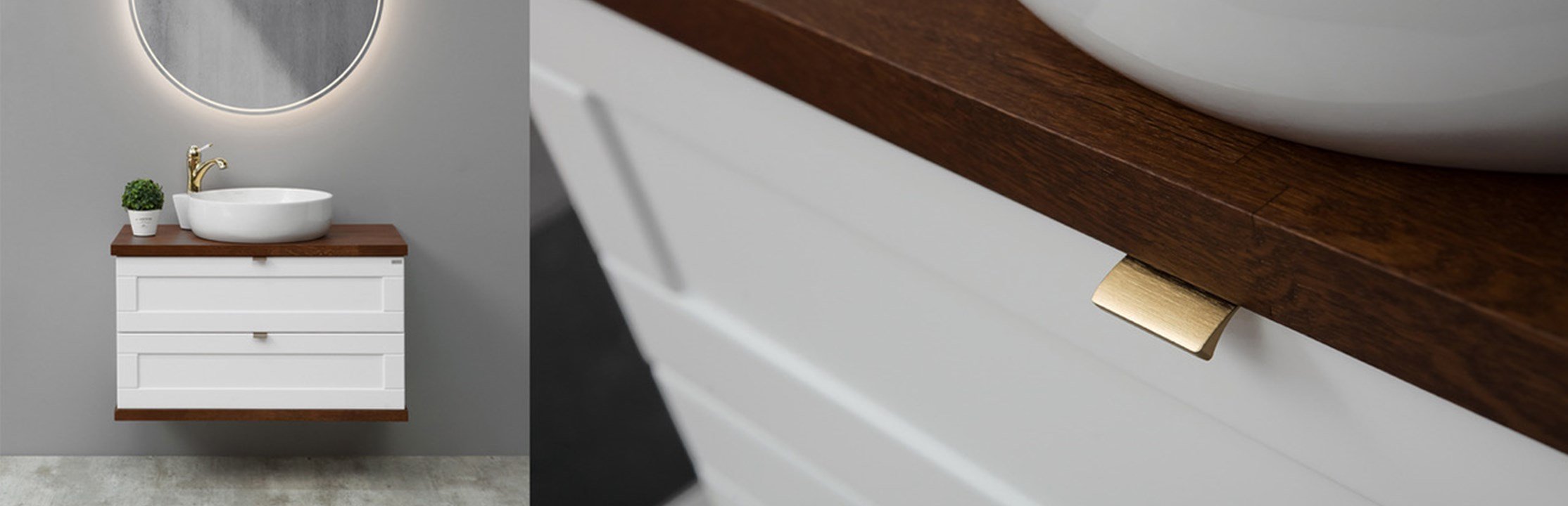 Ett badrum från 4AQUA innebär mer än bara en funktionell plats i din vardag – det är en harmonisk förening av stil och bekvämlighet. Vår passion för att skapa den optimala designen för alla stilar genomsyrar varje produkt vi tillverkar. Vi är dedikerade till att skapa badrumsmöbler som inte bara tillfredsställer de mest krävande estetiska standarderna utan också erbjuder en oöverträffad komfort och funktionalitet. Från klassiska till banbrytande möbelalternativ strävar vi alltid efter att erbjuda badrumsmöbler som inte bara är praktiska utan också estetiskt tilltalande. Med vår breda palett av stilalternativ kan du skapa ett personligt utrymme som passar din unika smak och livsstil. Välkommen till 4AQUA, där ditt drömbadrum blir till verklighet.