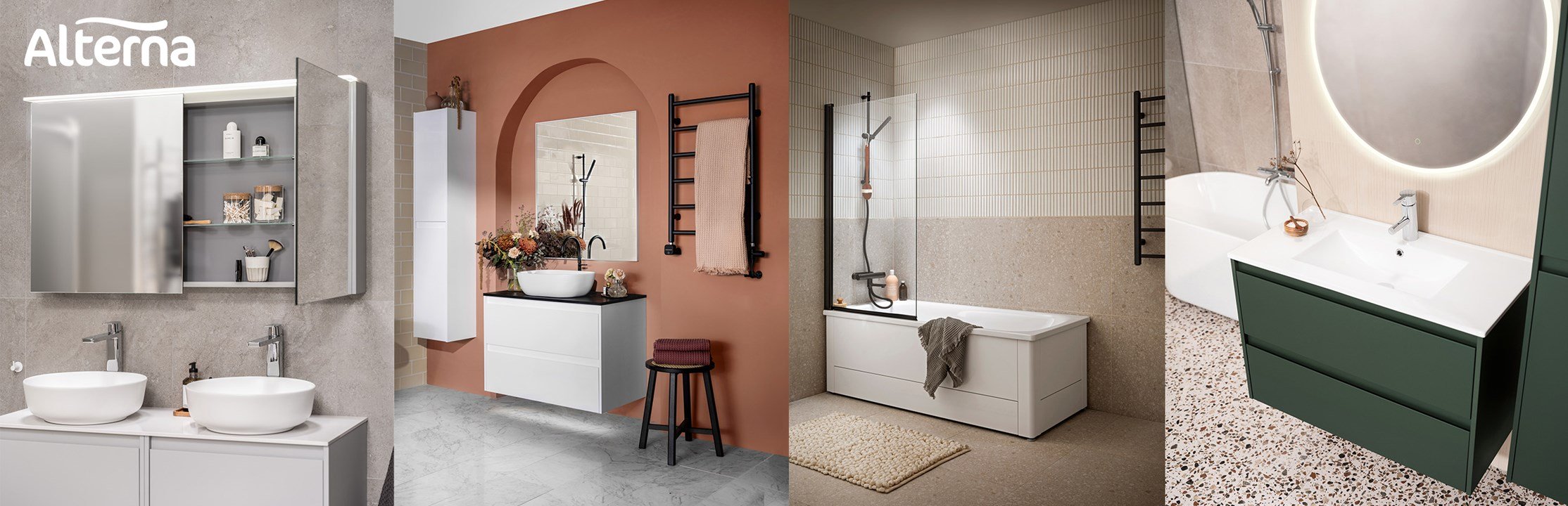 I all inredning från Alterna finns en balans mellan form och funktion. Allt måste fungera i ett badrum, samtidigt som ögat behöver sin njutning. Alterna har det du behöver för att inreda ditt badrum. Stort som litet – badrummet är ett av hemmets viktigaste platser och ska vara en plats där man kan trivas och må bra. Det tar Alterna fasta på när de skapar sina produkter. Med användaren och funktionen i fokus, och med stor respekt för kvalitet och miljö, har de byggt upp ett brett sortiment av produkter och flexibla, praktiska lösningar. Dessutom för alla smaker och behov. Det har de gjort för att du ska kunna skapa ett badrum att trivas i – i dag, i morgon och i många år framöver.