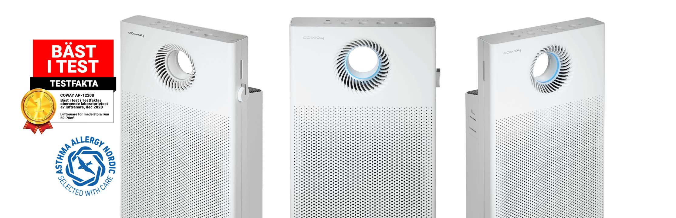 Coway står för användarvänlighet, kvalitet och trygghet. Med en luftrenare från Coway får du en smart luftrenare som arbetar vid behov och renar luften från skadliga partiklar. Varje luftrenare från Coway har en unik sammansättning av filter och varje filter har olika funktioner som minskar damm, mögelsporer, pollen, odörer, bakterier, micropartiklar, cigarettrök och andra skadliga ämnen som kan finnas i luften. Vårt sortiment innehåller luftrenare som skapar ett bra och hälsosamt inomhusklimat. Coway har flest luftrenare som är rekommenderade av Astma- och Allergiförbundet samt Asthma Allergy Nordic.