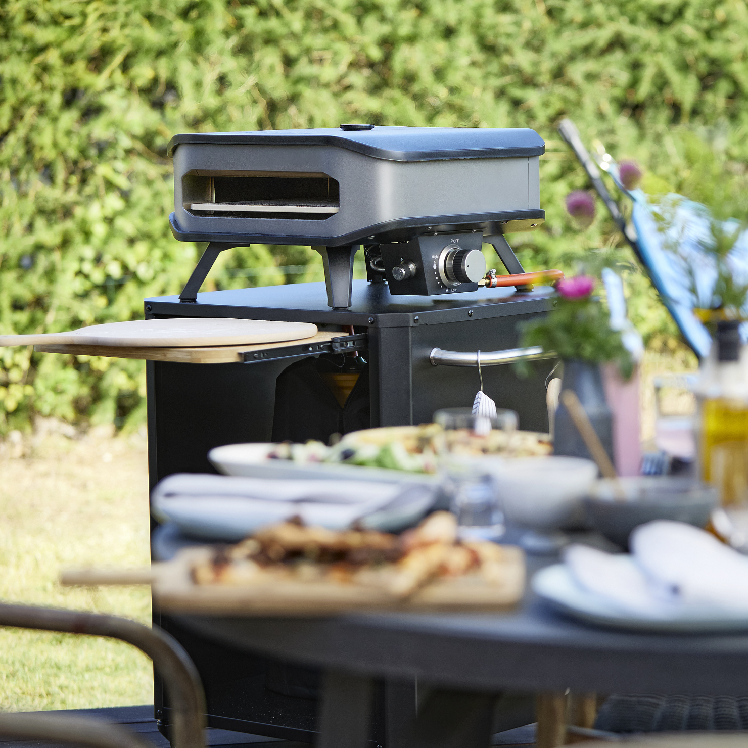 Utebord Cozze med Rostfritt Utdragsbord för 13/17 tum Pizzaugnar