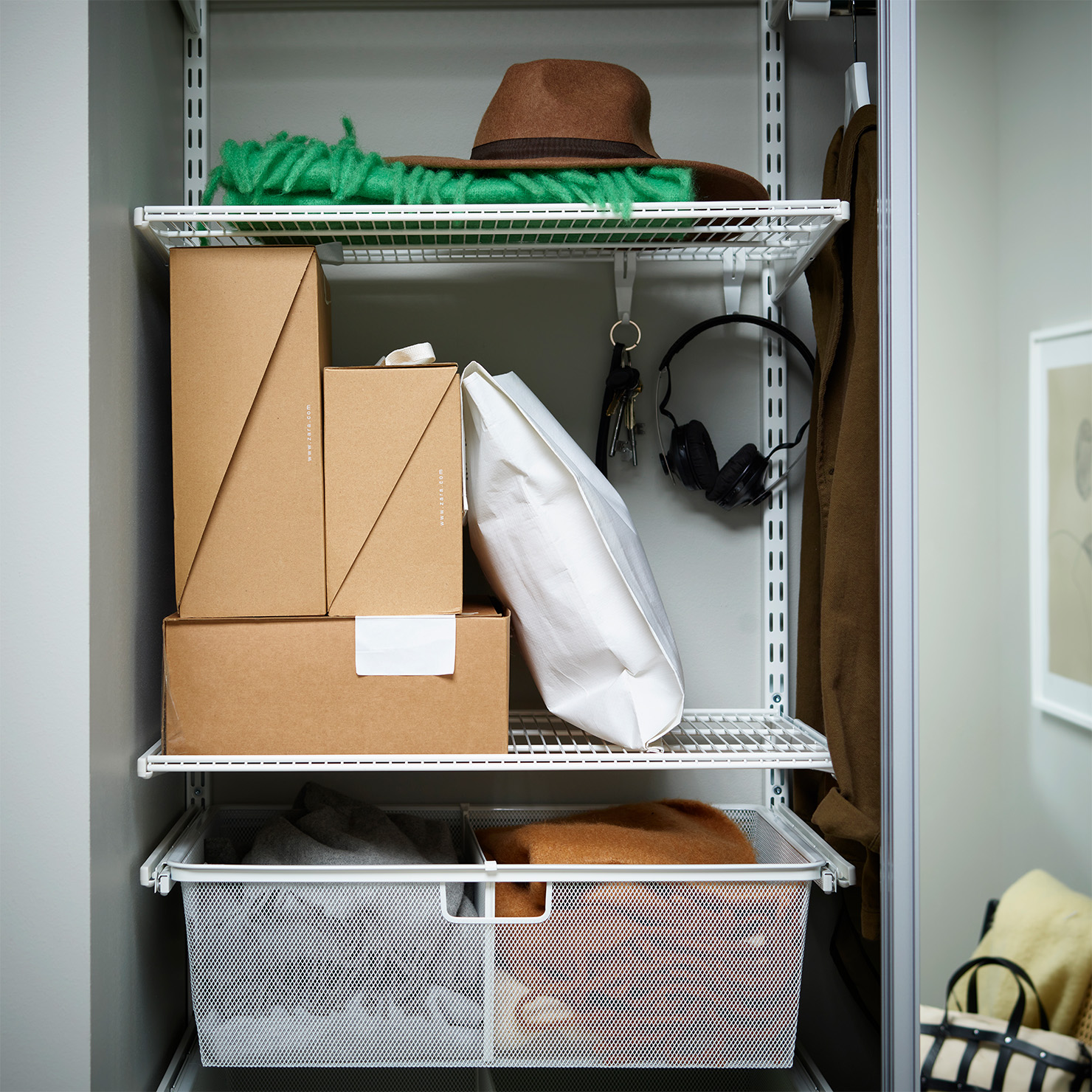 Hallösning Elfa Decor+ Enkel med Lutande Hyllor och Spegel