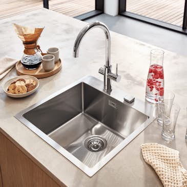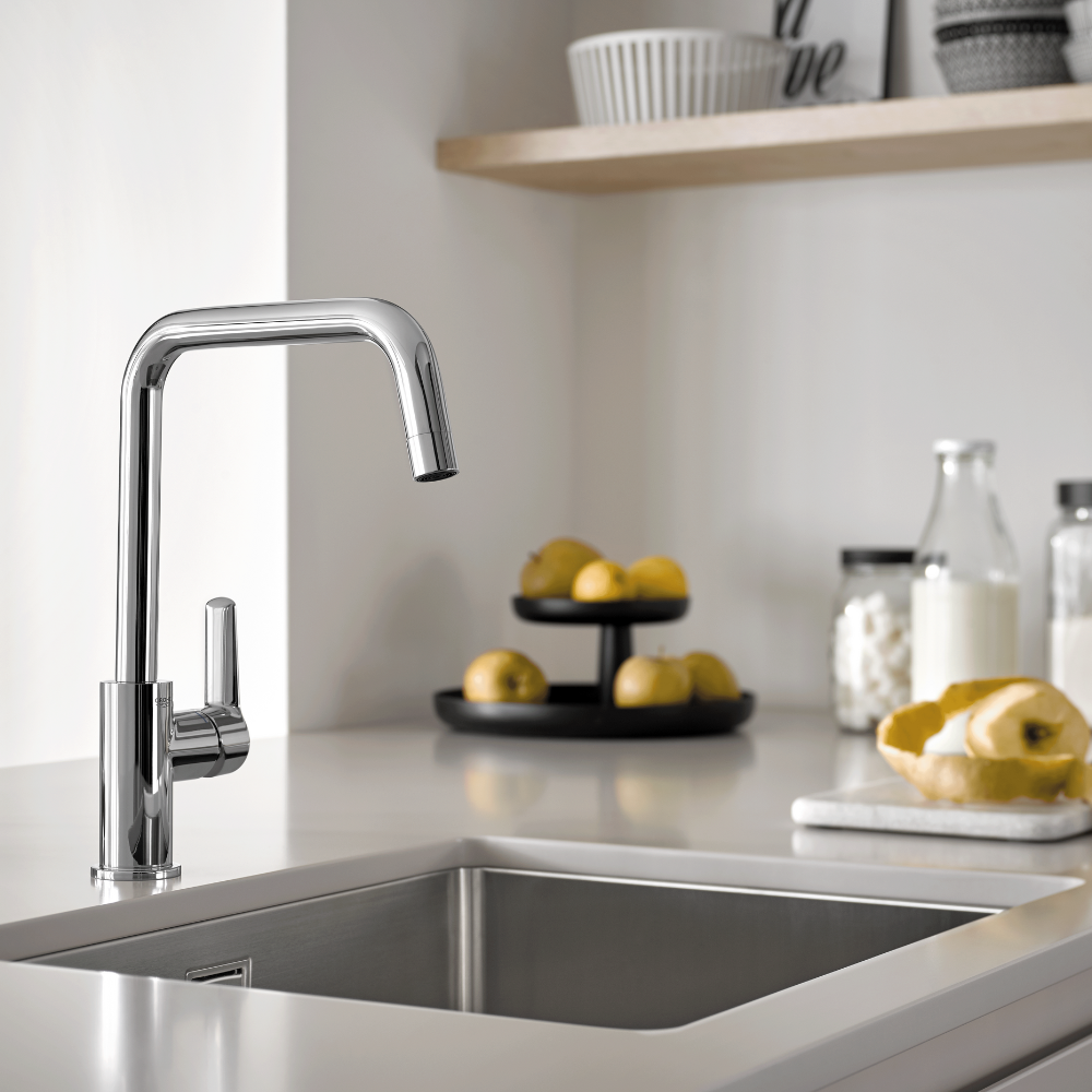 Vi kan erbjuda köksblandare som passar alla kök, från de enklaste modellerna med diskmaskinsavstängning till våra senaste innovationer GROHE Blue® Chilled & Sparkling och GROHE Red® kan du få dricksvatten av högsta kvalitet som kolsyrat och kylt eller kokande hett, direkt från din kökskran. Många av våra köksblandare finns även tillgängliga med utdragbar pip och duschstråle, för att underlätta ditt dagliga arbete i köket. Speciellt anpassade efter den svenska marknaden har vi även utvecklat köksblandare med diskmaskinsavstängning, exempelvis Eurosmart som erbjuder en god teknik till ett bra pris, eller Concetto som med dess framåtsträvande linjer och rena design ger ett fräscht och modernt intryck.