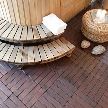 Golvplatta Hestraplattan Woodlook Mahogany Golvtrall för Balkong & Terrass