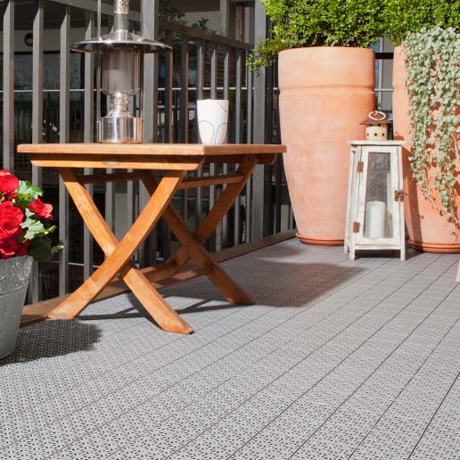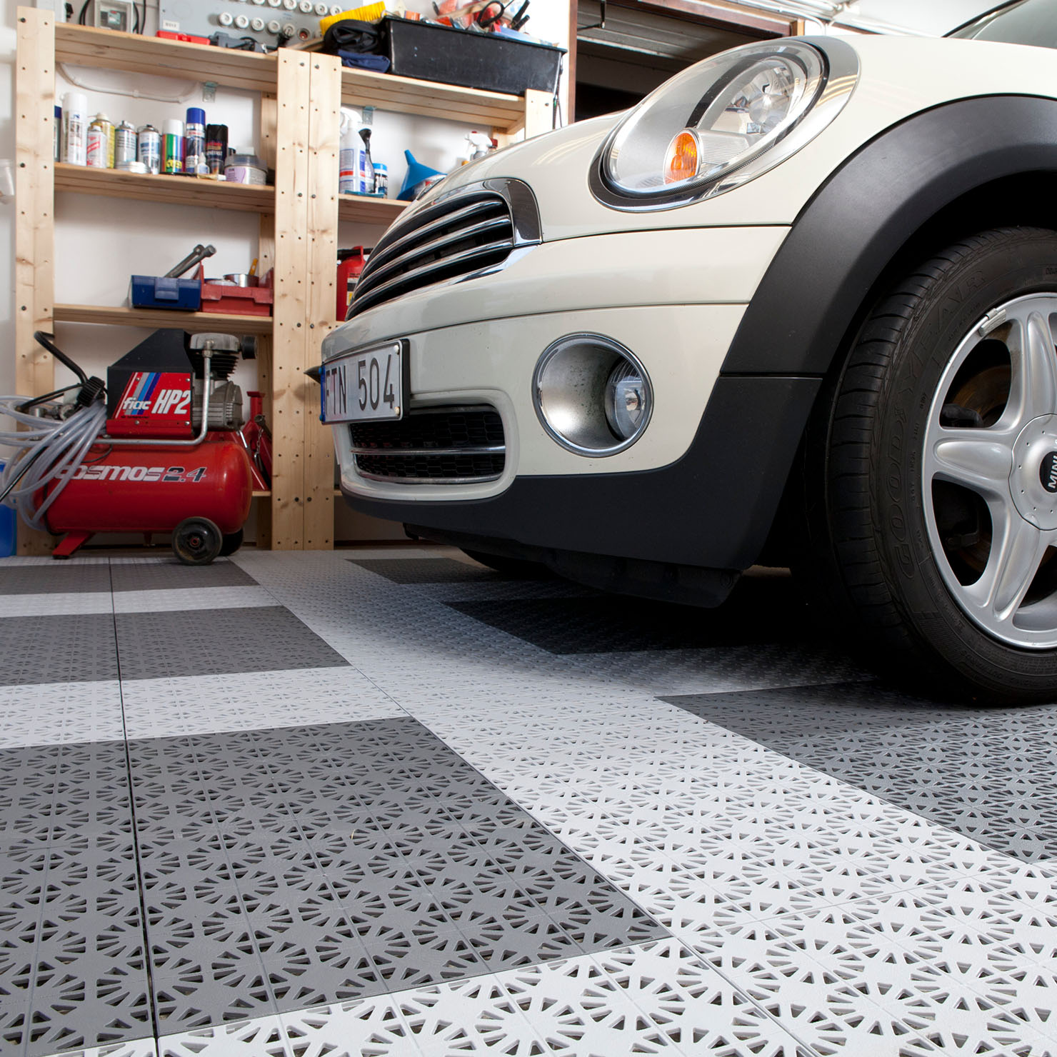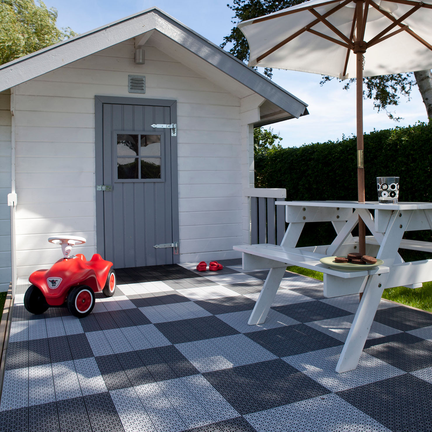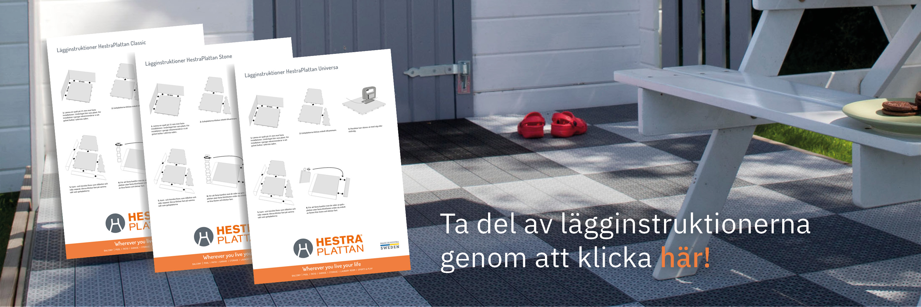 Med HestraPlattans golvplattor i plast kan du enkelt skapa en ombonad känsla var som helst. Golvplattorna passar både på uteplatsen, runt poolen, i groventrén eller tvättstugan, på balkongen, i uterummet eller förrådet. Några av våra plattor kan dessutom läggas i garaget. Kort sagt – med HestraPlattan får du ett slitstarkt golv med flera användningsområden!