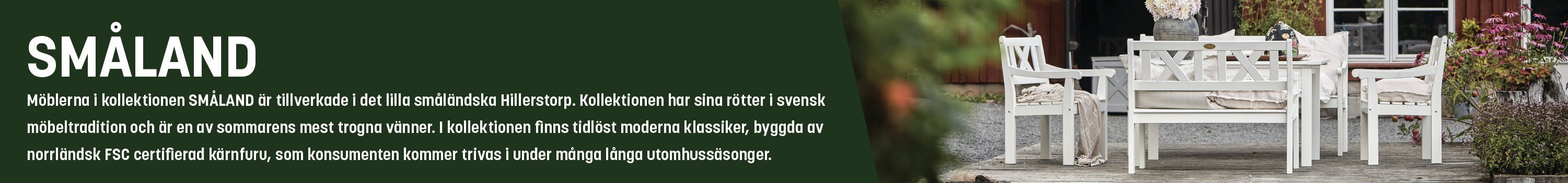 1929 grundade familjen Andersson Hillerstorp med visionen att tillverka hållbara och slitstarka utomhusmöbler. Idag, nästan hundra år senare, är Hillerstorp AB kvar på samma plats i entreprenörsregionen Småland och är en utav de ledande tillverkarna av trädgårdsmöbler i Skandinavien. I sortimentet hittar du allt från Hillerstorp utemöbler till paviljonger, dynlådor, möbelskydd, parasoller och dynor. Alla trämöbler i Hillerstorps sortiment är dessutom FSC-certifierade vilket betyder att träet kommer från en skog som brukar ansvarstagande och består till 100% av norrländsk kärnfuru.