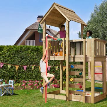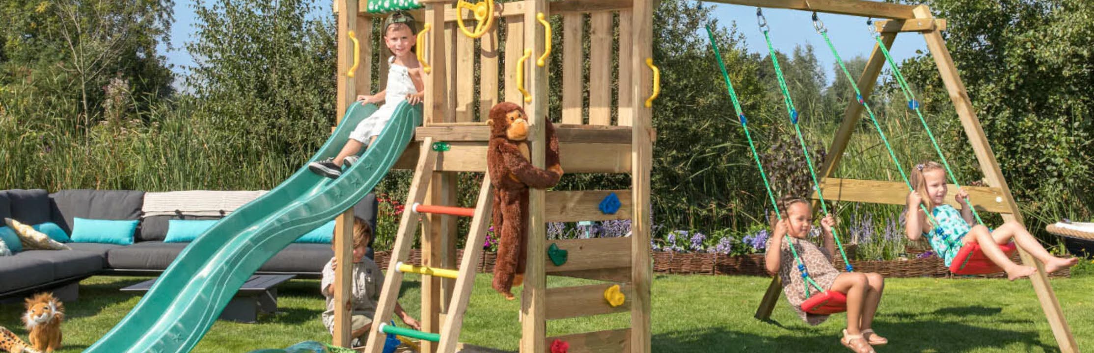 Jungle Gym är ett holländskt företag som är experter på lekplatser utomhus. De har funnits i ca 25 år och har ända från start velat aktivera barn på ett professionellt sätt och har många glada användare. Barn gillar att klättra och utforska saker. Så tryggt och bra att kunna göra det på sin gräsmatta med en egen lekplats. Jungle Gym har säkra kvalitetsprodukter som exempelvis klätterställning och klätternät, lekstuga eller gungställning. Lekplatsen kräver lågt underhåll och håller länge.