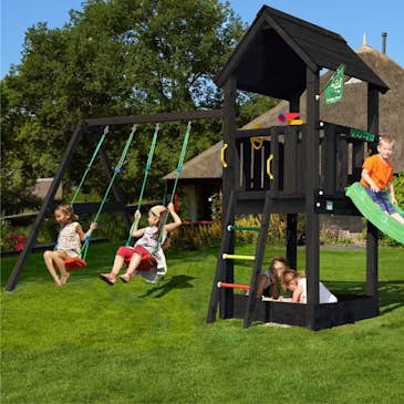 Lektorn Jungle Gym Club inkl. swing module xtra och rutschkana, grundmålat svart