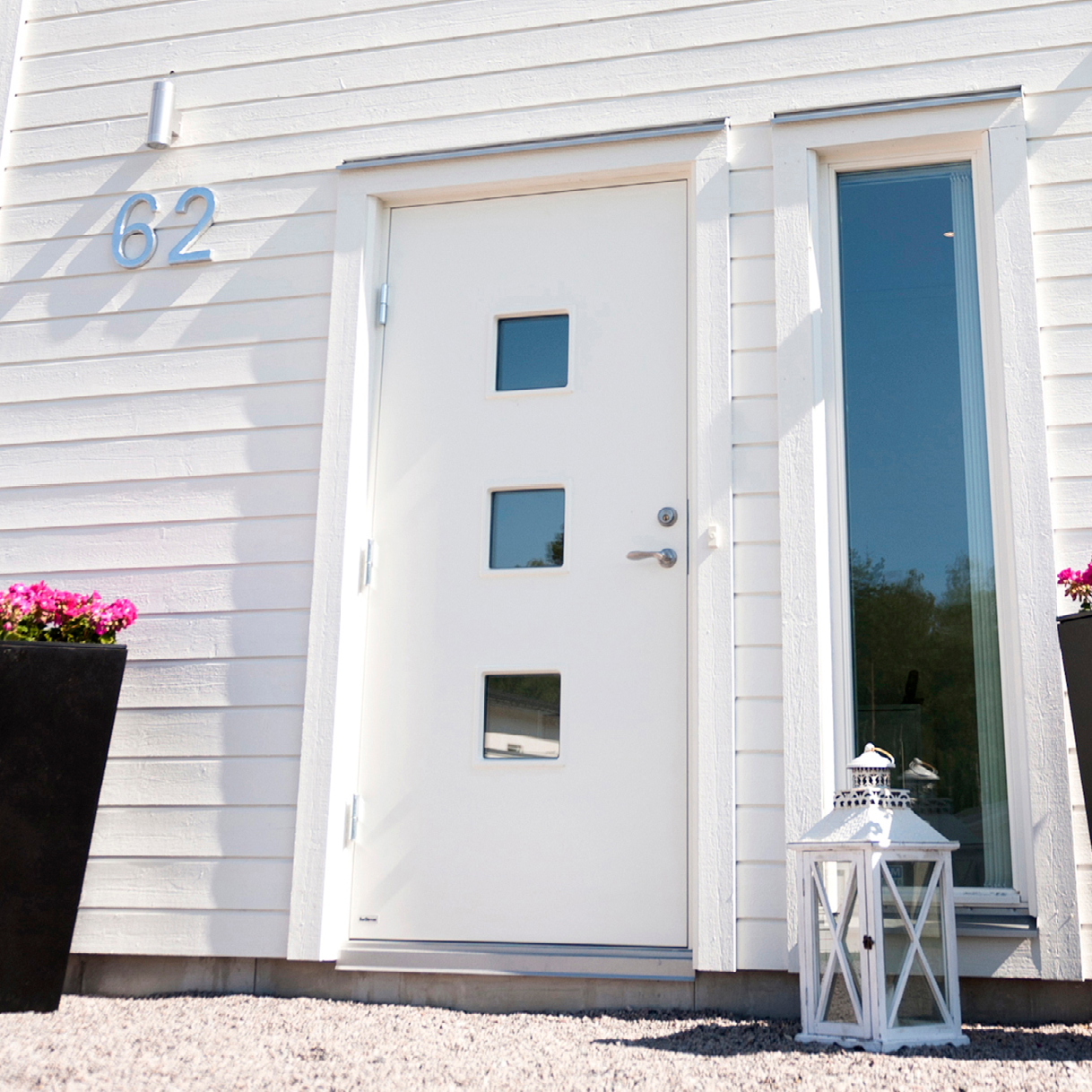 Bor är NorDans mest populära produktserie med moderna och traditionella kvalitetsytterdörrar. Den unika konstruktionen med rostfria stålplåtar ger en extra bra formstabilitet och med den vacuum-impregnerade och kraftiga karmen samt dubbla tätningslister förstärks ytterdörrens känsla av kvalitet ytterligare. Dörrarna är redan säkra, men som tillval kan du höja säkerhetsnivån med ett elektroniskt dörrlås. Du kan känna dig trygg bakom en ytterdörr från NorDans produktserie Bor.