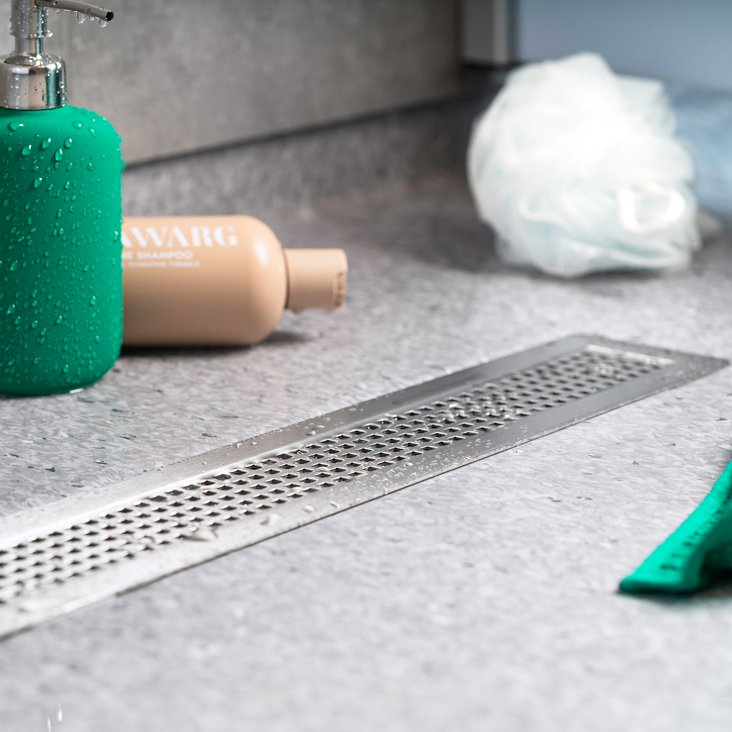 Designbrunnarna från Purus är lika pålitliga som traditionella golvbrunnar, men med en smartare design som lättare passar ihop med övrig badrumsinredning. .